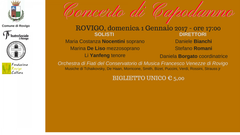 Domenica 1 gennaio 2017, ore 17, torna il Concerto di Capodanno del Teatro Sociale di Rovigo.