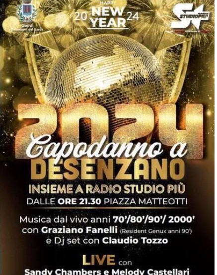 Dopo il Natale di Desenzano il 31 dicembre, dalle ore 21:30 , la festa continua con il Capodanno in Piazza Matteotti a Desenzano del Garda con musica dal vivo e con DJ Claudio Tozzo e Graziano Fanelli di Radio Studio Più.