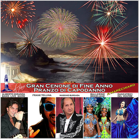 Per finire in bellezza il 2016 e iniziare nel migliore dei modi il 2017, il Ristorante Al Faro a Marechiaro ha ideato un cenone di Capodanno da 119 euro, con live animation di Frank Tellina, la musica di Alberto Miranda e la sua band, la comicità di Massimo Burgada (premio Troisi e vincitore La sai l'ultima) e l'allegria delle danzatrici del ventre e delle ballerine brasiliane. Il primo gennaio, a pranzo, proponiamo un menu da 60 euro con 10 portate. Scegliendo la formula Capodanno+Primo gennaio il costo sarà di soli 159 euro.