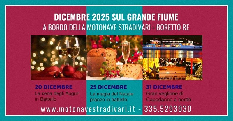 Sul Po, quando dicembre avvolge il mondo nel suo silenzio dorato, la Motonave Stradivari diventa un luogo sospeso tra realtà e incanto. Le sue sale eleganti, illuminate da luci calde e addobbate a festa, accolgono chi desidera vivere la magia delle Feste in un modo diverso: più intimo, più autentico, più emozionante.