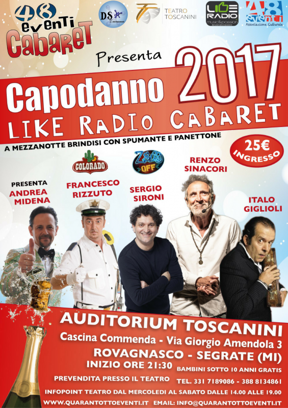 Vi aspettiamo per ridere del 2016 e attendere il 2017, tra risate, comici, panettone, spumante.