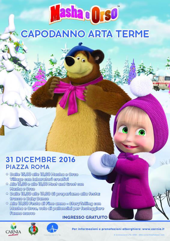 La proposta “family friendly” di Arta Terme presenta personaggi “puliti” che fanno impazziremilioni di piccoli fans in tutta Italia (la piccola Masha e il suo amico Orso rappresentano un fenomeno di grande successo), con un taglio educativo e al contempo ludico che preannuncia una festa di inizio anno davvero speciale, perché in grado di riunire tutta la famiglia. Il weekend di Capodanno sarà quindi un'occasione da non perdere per incontrare da vicino Masha e Orso e per cimentarsi, tutti assieme, in divertenti attività creative divertendosi in famiglia.