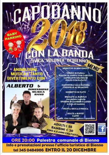 Sotto la direzione della Banda civica "volontà" di Bienno, anche quest'anno si festeggia il Capodanno in palestra, con buon cibo, animazione, la musica e tanto divertimento con "Alberto & dimensione musica band" che faranno di questa serata una festa memorabile.