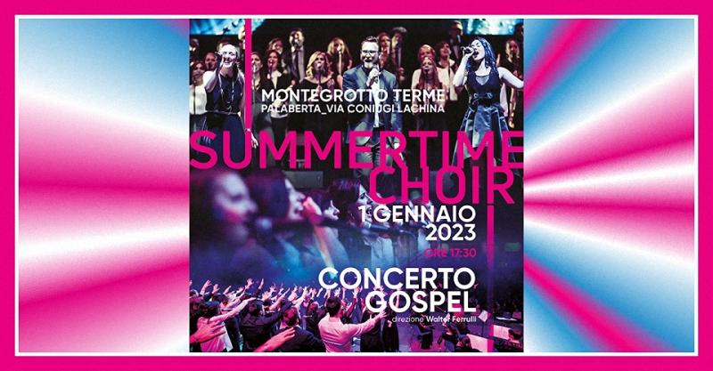 Domenica 1° Gennaio alle 17.30 al Palaberta di Montegrotto Terme si terrà il tradizionale Concerto di Capodanno con i Summertime Choir, un concerto gospel con direzione di Walter Ferrulli.