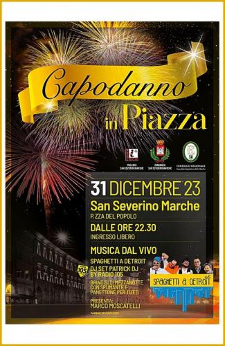In Piazza del Popolo a San Severino Marche in provincia di Macerata si festeggia nella giornata di Domenica 31 Dicembre 2023, dalle ore 22.30, la Festa di Capodanno in Piazza.