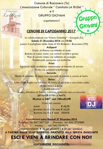Prenotazioni entro Martedi 27 Dicembre 2016