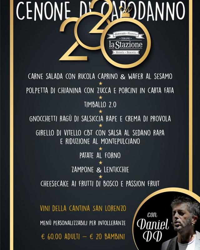 Gran Cenone di San Silvestro con Veglionissimo di Capodanno a Teramo presso il Ristorante “La Stazione” a Teramo Città zona Gammarana, Martedì 31 Dicembre 2019.