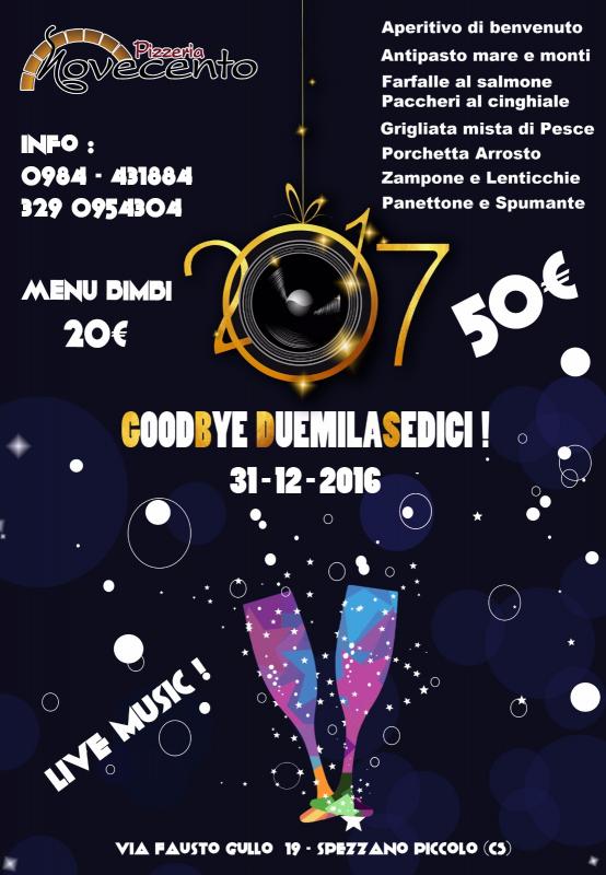 Cenone e veglione capodanno 2017 alla Pizzeria Novecento in compagnia!