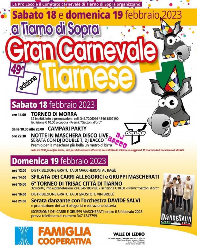 GRAN CARNEVALE TIARNESE 18 e 19 febbraio 2023