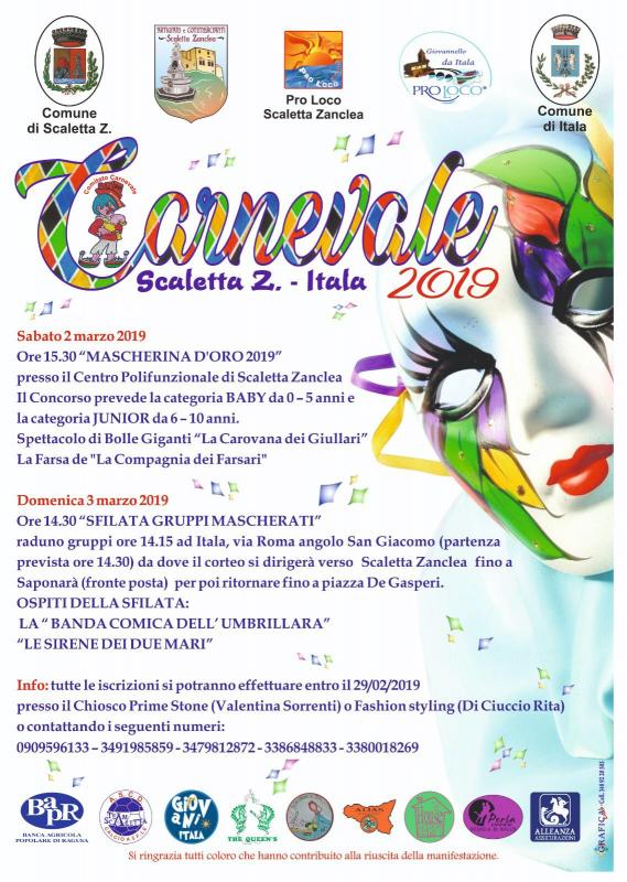 Sabato 2 e domenica 3 marzo 2019 per il Carnevale a Scaletta Zanclea si svolge il concorso "La Maschera d’Oro"