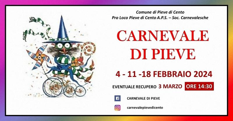 Manca pochissimo all'edizione 2024 del Carnevale di Pieve di Cento...ci vediamo il 04, i11 e 18 Febbraio 2024, con eventuale recupero il 03 Marzo.