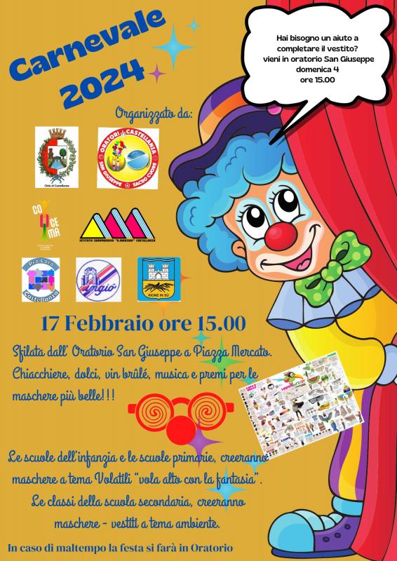 Doppio appuntamento SABATO 17 FEBBRAIO a Castellanza per festeggiare il Carnevale 2024.