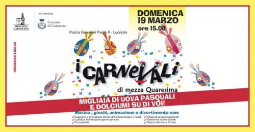 Domenica 19 Marzo in Piazza Giovanni Paolo II a Lucrezia, frazione del Comune di Cartoceto, un pomeriggio di attrazioni e divertimento.