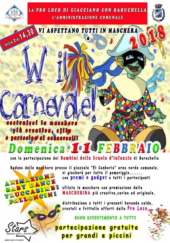 Domenica 11 Febbraio 2018, alle ore 14:30 presso il piazzale El Camborio, la Pro Loco di Giacciano con Baruchella vi aspetta tutti per la grande festa di Carnevale, a cui sono tutti invitati a partecipare portando tanta allegria nella cittadina in provinicia di Rovigo.