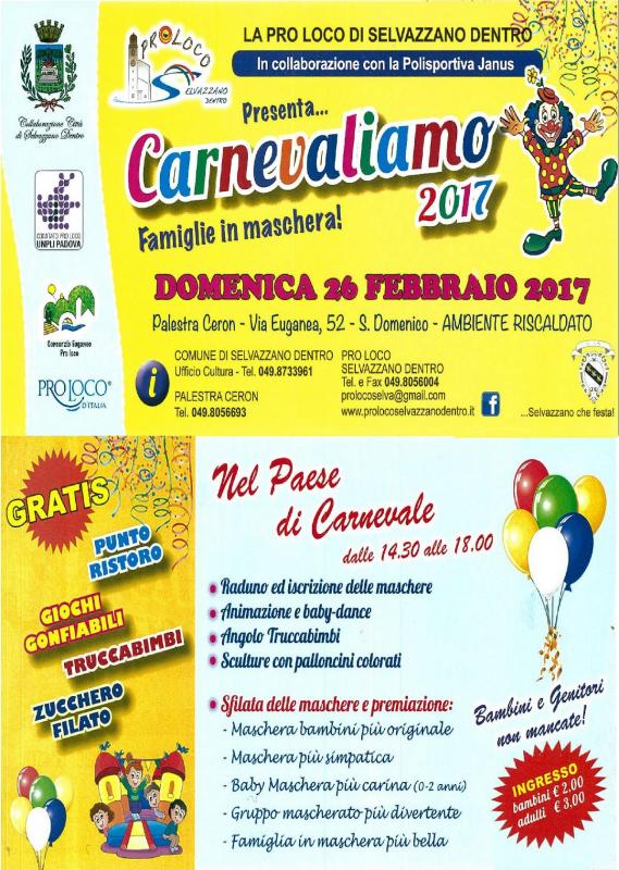 Si festeggia il Carnevale a Selvazzano Dentro domencia 26 febbraio 2017 con Carnevaliamo 2017.