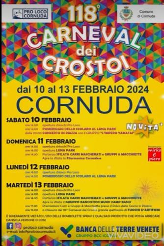 Da Sabato 10 Martedì 13 Febbraio 2024 si svolgono gli eventi della 118a edizione del Carneval dei Crostoi di Cornuda.