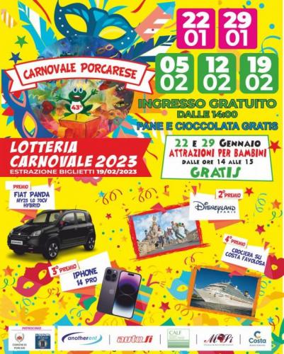 A Porcari (LU) arriva il Carnevale con il loro Carnovale Porcarese che si svolge il 14, 21, 28 Gennaio e il 04, 11 Febbraio 2024.