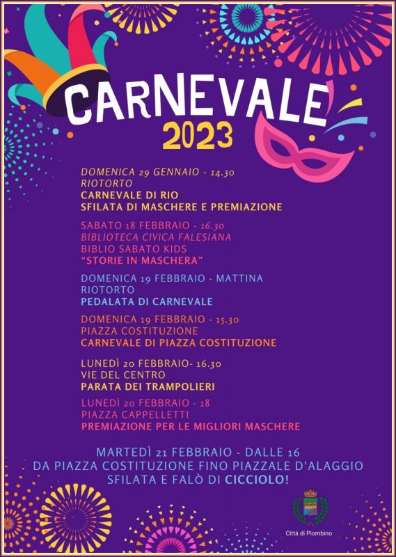 Si inizia già a Gennaio con un’anteprima: il 29 Gennaio alle 14.30 ci sarà infatti il “Carnevale di Rio” a Riotorto, con la sfilata di maschere seguita dalla premiazione.