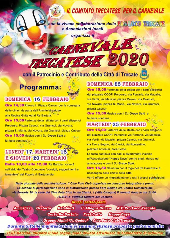 Anche quest’anno il Carnevale Trecatese prevederà tre sfilate nelle domeniche 16, 23 febbraio 2020 e nel giorno di martedì grasso 25 febbraio 2020.