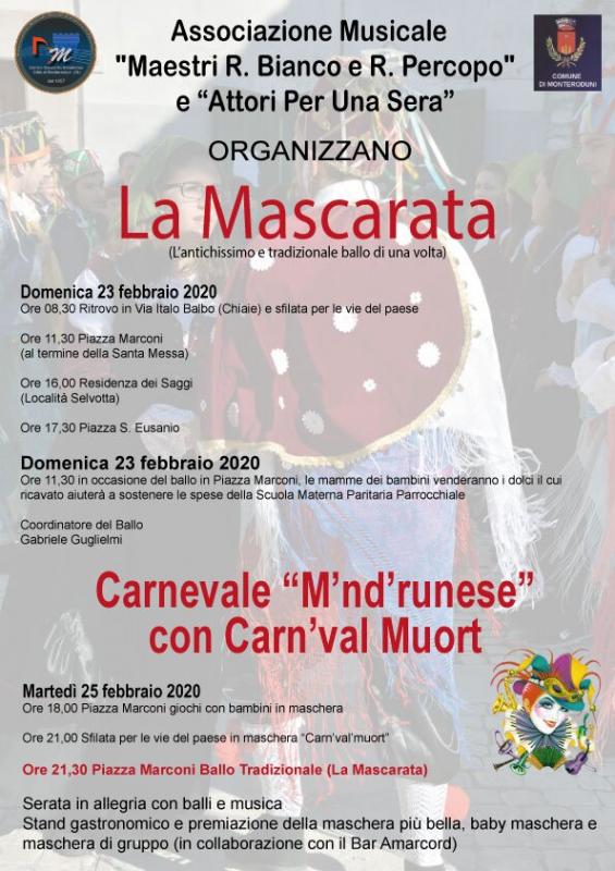 Ore 21,00 Sfilata per le vie del paese in maschera “Carn’val’muort”