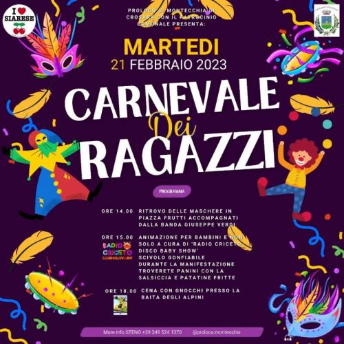 Il carnevale dei ragazzi è organizzato dalla Pro Loco ed è una tradizione che si ripete a Montecchia di Crosara ogni anno l'ultimo giorno di carnevale.