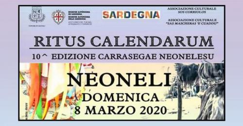 L'Ass.ne culturale Pietro Murgia "Sas mascheras 'e cuaddu", con il patrocinio dell'Amministrazione Comunale di Neoneli, è lieta di invitarvi alla decima edizione di "su Carrasegae Neonelesu" che si tiene Domenica 08 Marzo 2020.