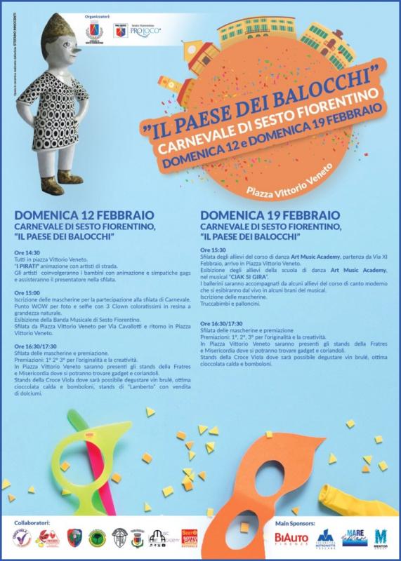 Domenica 12 Febbraio e Domenica 19 Febbraio festeggeremo a Sesto Fiorentino il Carnevale: il Paese dei Balocchi vi attende in Piazza Vittorio Veneto, e tra le vie e le piazze del centro, con animazione, esibizioni, concorsi e sfilate, cibo e bevande, musica e coriandoli, per grandi e piccini. Vi aspettiamo!