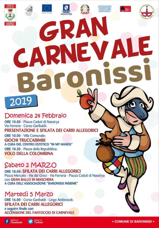 Arriva il Gran Carnevale Baronissi domenica 24 febbraio, sabato 2 marzo e martedì grasso 5 marzo 2019.