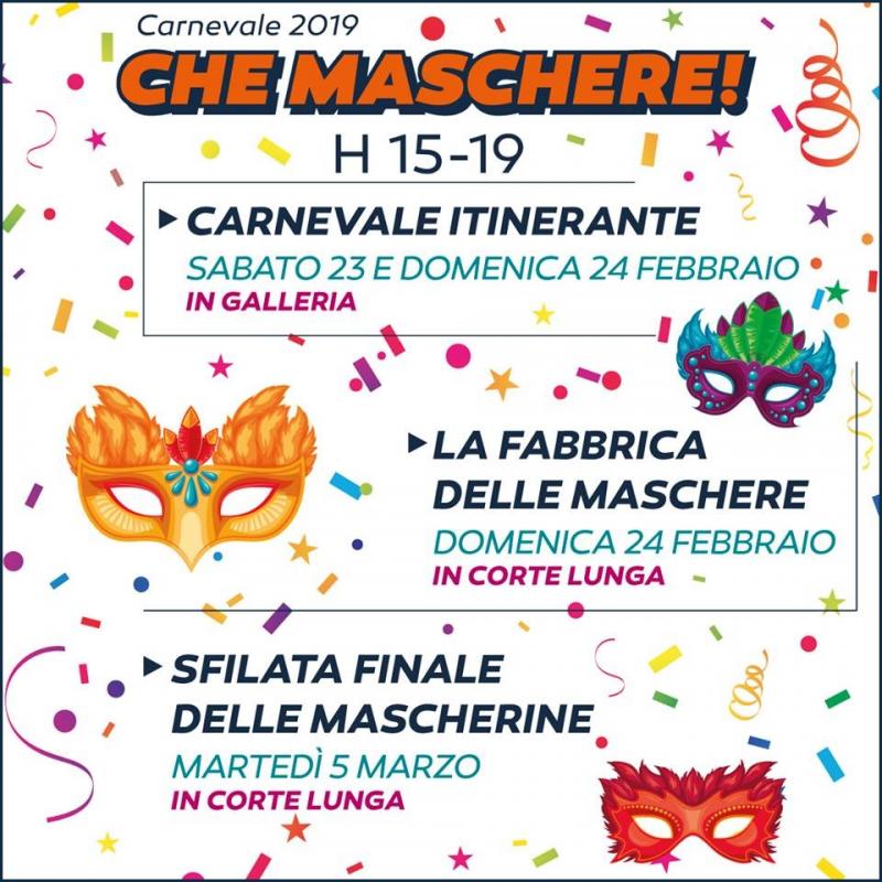 - Sabato 23 e domenica 24 febbraio Carnevale Itinerante in Galleria dalle 15.00 alle 19.00.