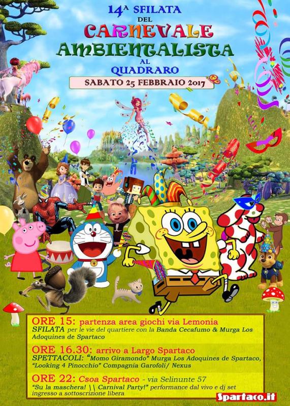 Come tutti gli anni da 14 anni, il Centro Sociale Spartaco organizza la sfilata del carnevale ambientalista per le strade del quartiere, un momento di aggregazione per festeggiare il carnevale totalmente autogestito e autofinanziato!