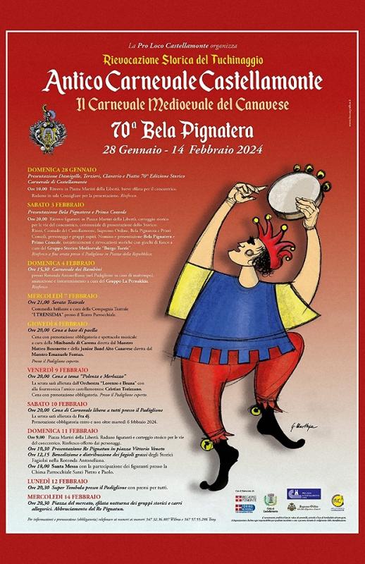 A Castellamonte in provincia di Torino si svolge nei giorni dal 28 Gennaio al 14 Febbraio 2024 la 70a Edizione di Bela Pignatera, l'Antico Carnevale Medievale.