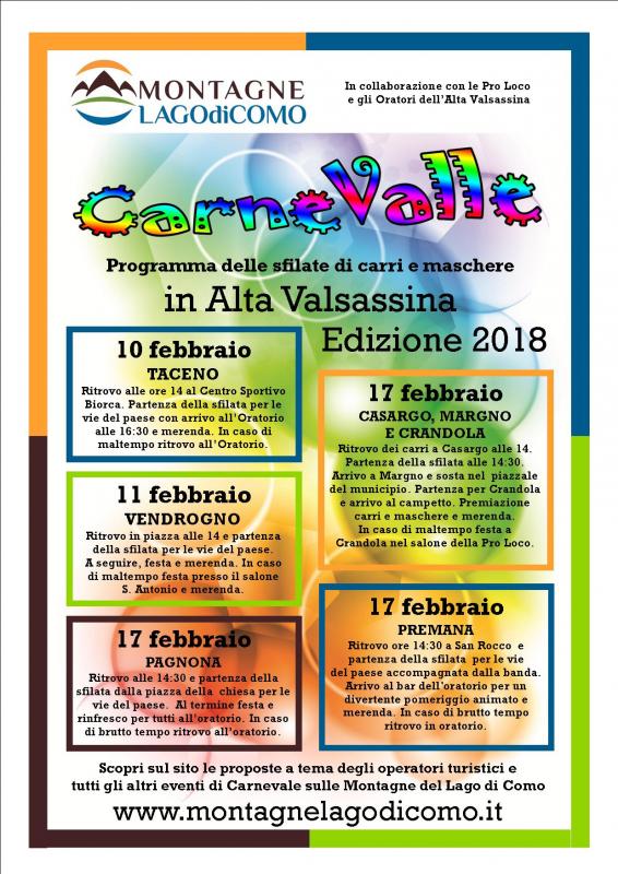 Tante sono le proposte e ricchissimo è il programma delle manifestazioni per trascorrere in allegria le festività del Carnevale 2018 sulle Montagne del Lago di Como, con manifestazioni a temanei paesi del lago e dei monti.