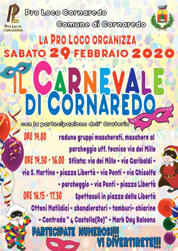 A Cornaredo in provincia di Milano si svolge nella giornata di Sabato 29 Febbraio 2020 la Festa di Carnevale in Città.
