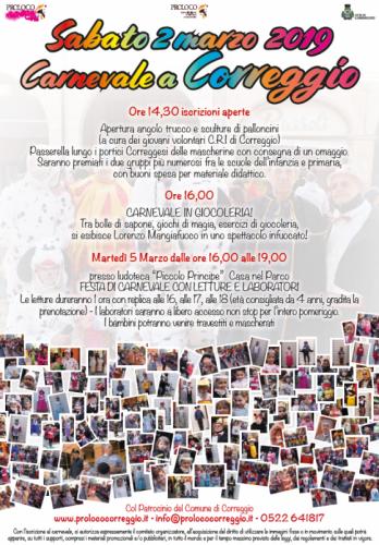 Sabato 2 marzo 2019 torna il Carnevale a Correggio con i bambini in maschera che sfilano lungo Corso Mazzini.