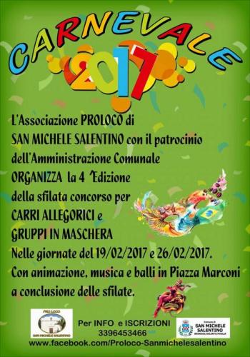 La Pro Loco di San Michele Salentino organizza le due sfilate del Carnevale 2017 che si svolgono domenica 19 e domenica 26 febbraio 2017.