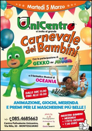 Martedì 05 Marzo 2019 grande festa all'Unicentro con il CARNEVALE DEI BAMBINI: dalle 15,00 alle 19,00 giochi, musica, animazione, premi per le mascherine più belle e tanto divertimento con l'animazione di Gadoò Eventi ed il servizio foto di 2.8 Photographer.