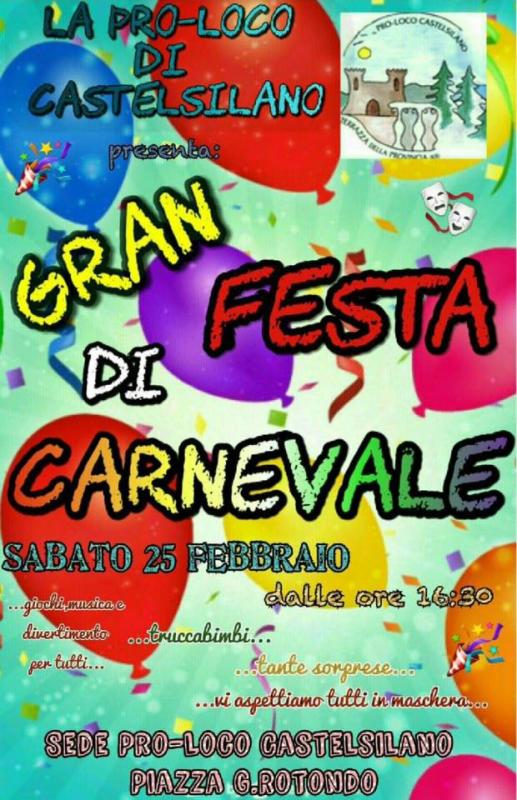 Sabato 25 febbraio 2017 Gran Festa di Carnevale a Castelsilano (KR).