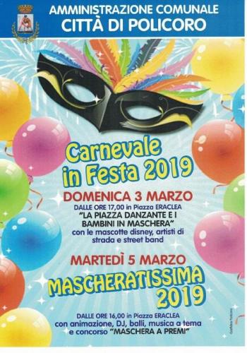 POLICORO: TUTTO PRONTO PER LA MASCHERATISSIMA 2019