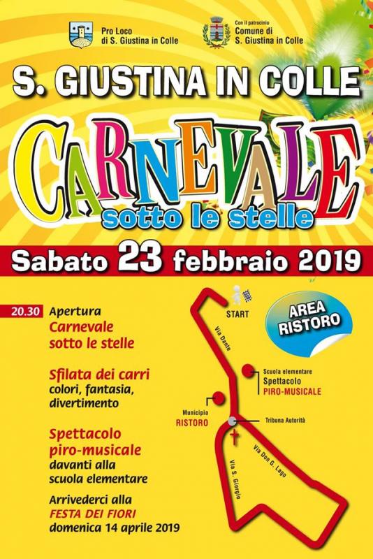 Carnevale Sotto Le Stelle 23 feb 2019 - Santa Giustina in Colle h. 20:30 apertura carnevale, seguirà Sfilata dei Carri e si concluderà con spettacolo Piro-Musicale davanti alla scuola elementare