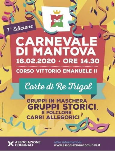 Una straordinaria miscela di combinazioni che coniugano la maschera estemporanea quale quella di Re Trigol, simbolo di fantasia artistica, unica maschera in grado di rappresentare la città di Mantova