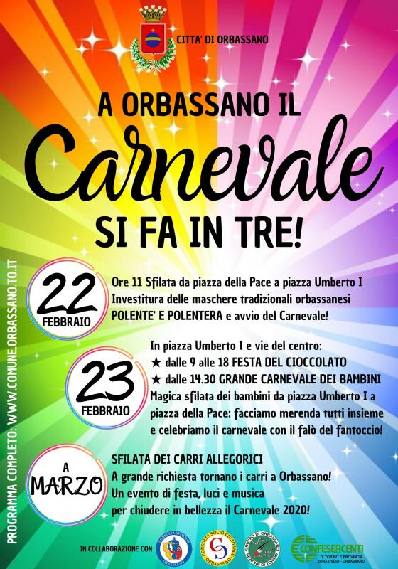 Tre appuntamenti per il Carnevale Orbassanese: 22, 23 febbraio 2020 e a marzo (data non ancora rivelata).