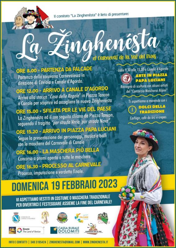 A Canale D'Agordo in provincia di Belluno si svolge nella giornata di Domenica 19 Febbraio 2023 la Zinghenésta Di Canale D'agordo.