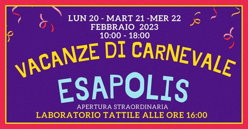 Apertura straordinaria di Esapolis per le vacanze di Carnevale