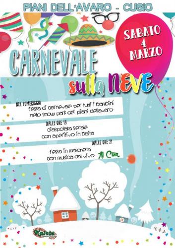 Sabato 4 marzo 2017 Carnevale sulla Neve al Monte Avaro, Piani dell'Avaro di Cusio.