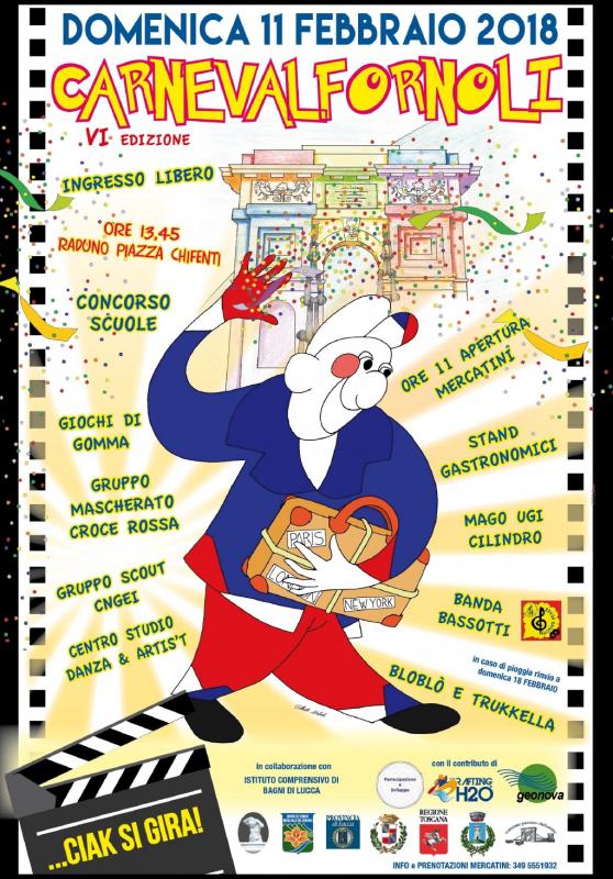 Dalle ore 11.00 a Fornoli, concorso per le scuole, mercatini, stand gastronomici, musica dei Pedrasamba e alle ore 13.45, il raduno per il corso mascherato. Inaugurazione del carro rievocativo dell'antico Carnevale realizzato dalla Scuola Media di Bagni di Lucca. A cura dell'Ass.ne Il Mammalucco in collaborazione con l'Amm.ne comunale di Bagni di Lucca e l'Istituto Comprensivo di Bagni di Lucca.