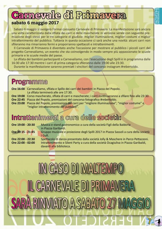 Ritorna sabato 6 maggio 2017 a San Giovanni In Persiceto il Carnevale di Primavera con tantissime novità.