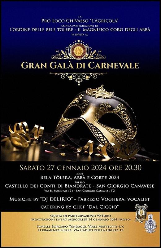 Vi aspettiamo Sabato 27 Gennaio ore 20.30 presso la splendida location del Castello dei Conti di Biandrate a San Giorgio Canavese.