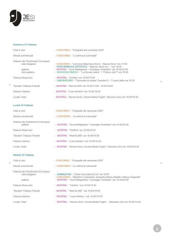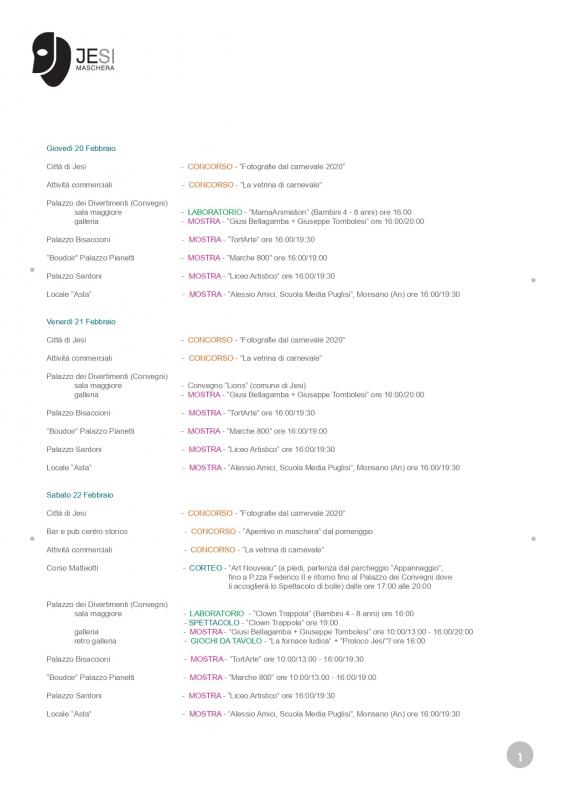 A Jesi in provincia di Ancona si svolge nei giorni 20, 21, 22, 23, 24, 25 Febbraio 2020 la Festa di Carnevale "Jesi si Maschera 2020".