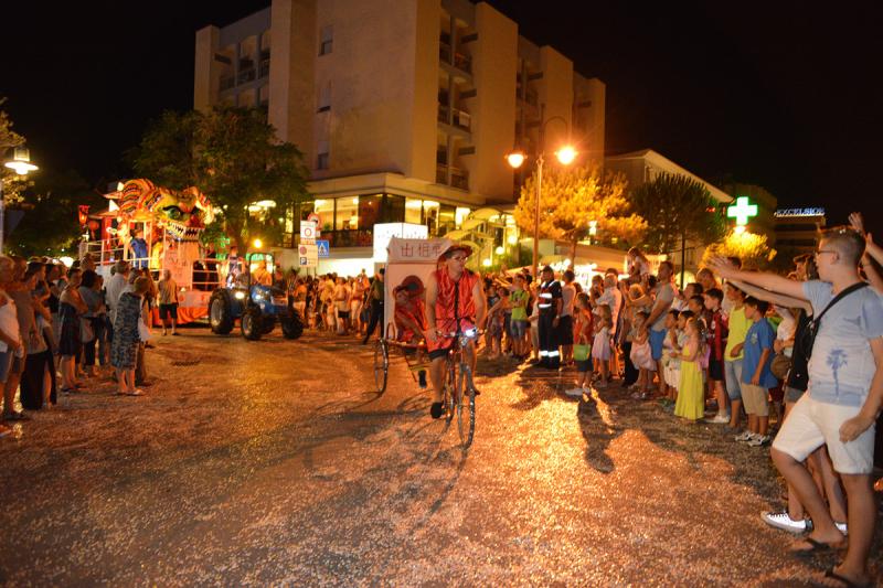 Dalle 21, partendo da viale Giulio Cesare, i carri e il corteo sfileranno per le vie di Gatteo Mare in una coloratissima parata con adulti e bambini: ce n’è davvero per tutti i gusti sui carri dell’associazione Tot Slà Maschera, con la novità di tre carri interamente allestiti dagli albergatori e affollati da turisti in maschera. A “salire sul carro” sarà anche Alberto Pazzaglia, alias “Betobahia”, l’irriverente autore del tormentone da mare “Ciapa la Galeina”, che dall’alto del suo carro farà ballare con tutti con i suoi mix di ritmi latini e dialetto romagnolo. A ballare con lui ci saranno le coloratissime Brazilian girls, le ballerine dai costumi sgargianti e piumati che daranno un tocco brasileiro alla festa.