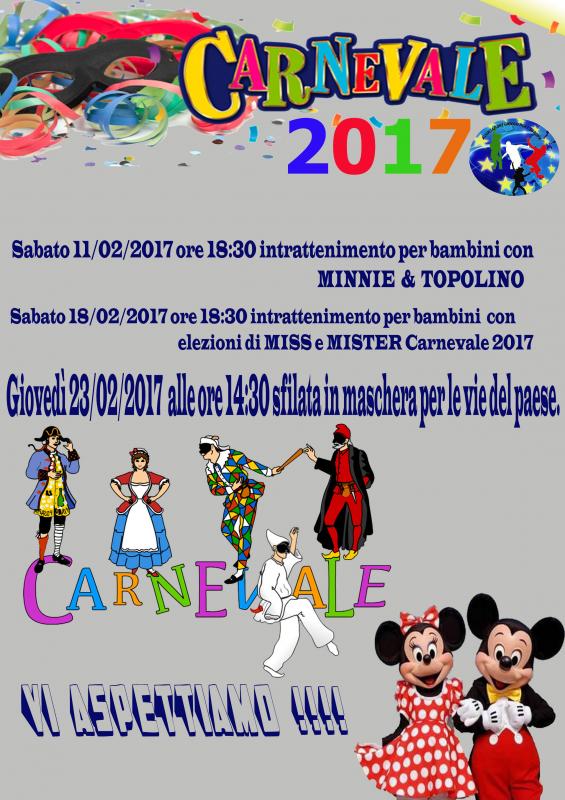 Sfilata per le vie del paese con Musica, balli canti e tanti coriandoli.